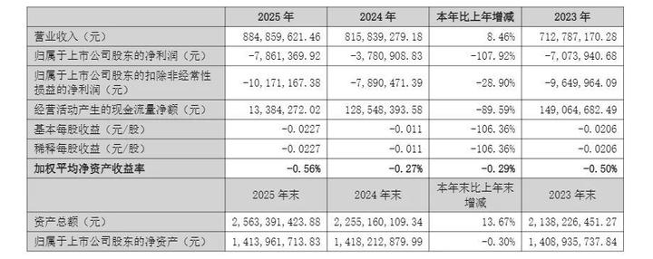 结合公司此前发布的2025年年度报告来看,龙利得2025年全年实现营业收入8.85亿元,同比增长8.46%,但归母净利润为-786.14万元,同比下降107.92%。公司当时解释,业绩未达预期主要系安徽明光龙利得绿色智能文化科创园(一期)于2025年度初步投产,固定资产折旧及项目前期投入对净利润产生一定影响;同时公司计提商誉资产减值准备462.54万元。