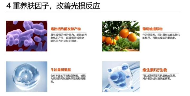 化学防晒:吸收紫外线精选高效温和的化学防晒剂。