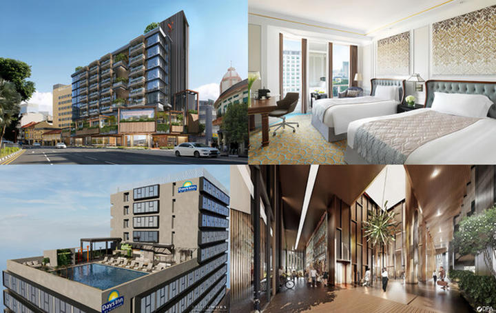 按序:新加坡福莱臻品之选酒店(图片来源:万豪国际集团)、新加坡 Frasers House 豪华精选酒店(图片来源:万豪国际集团)、Days Inn by Wyndham Singapore in Novena(图片来源:Design Worx Interior Consultant Pte Ltd)、Mövenpick Singapore 新加坡瑞享酒店(图片来源:DP Architects)