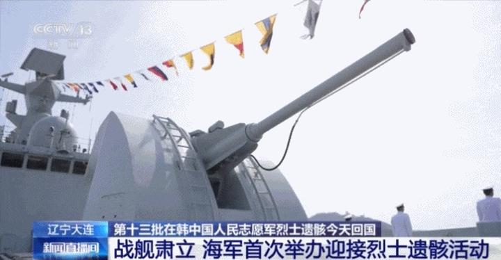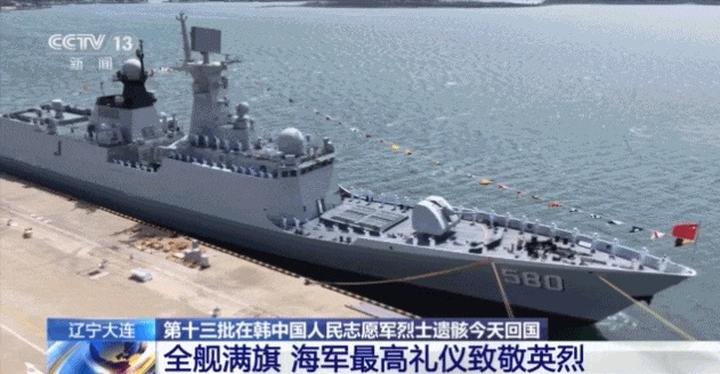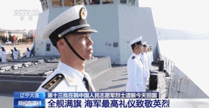 接迎第十三批在韩中国人民志愿军烈士遗骸的中国空军运-20B专机,在进入中国领空后,人民海军以最高礼仪迎接英雄回家。