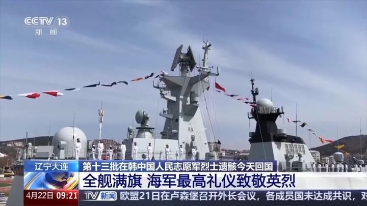 满旗,是海军舰艇在国家重大场合和迎接国家元首时才会启用的最高礼仪。今天,中国海军就以“国之利刃”和最高礼仪,向志愿军先烈们致以最崇高的敬意。