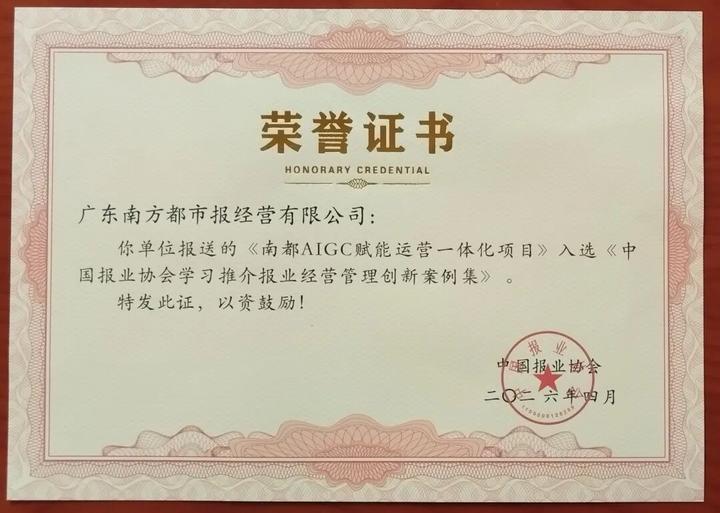 在经营管理创新方面,南方都市报的《以敏捷经营驱动赛道轮动:价值生态重构下的南都多元突破》与《南都AIGC赋能运营一体化项目》双双入选创新案例集。前者展现了南都通过敏捷经营机制推动多元业务协同发展的系统思考,后者则体现了南都积极拥抱人工智能技术、以AIGC赋能运营一体化的前沿探索。