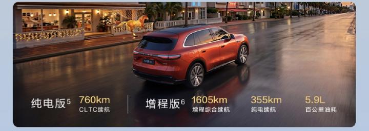 动力方面,增程版搭载1.5T增程器,综合续航1605km,0-100km/h加速仅4.5秒;纯电版基于800V高压平台,搭载100kWh巨鲸电池,CLTC续航最高760km。两种动力布局全面覆盖不同用户的出行需求。