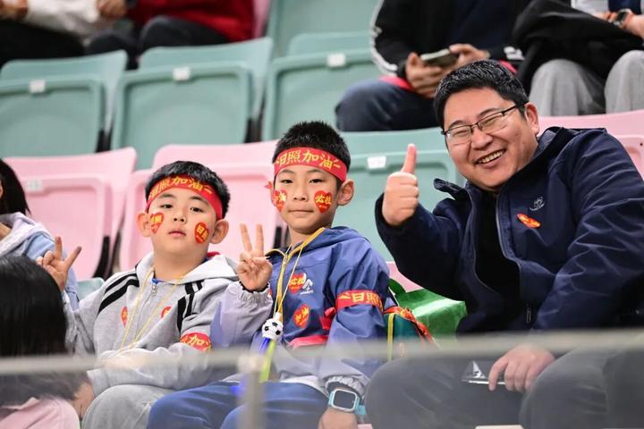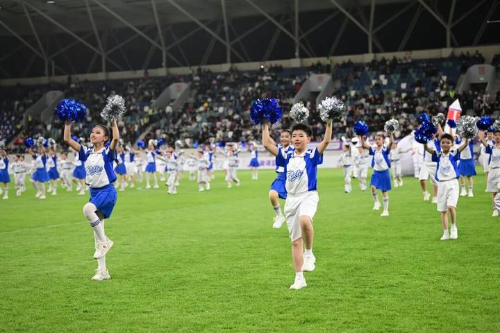 紧接着,歌声响起。枣庄路小学的同学们身着亮色球衣,与日照歌手同场演唱专为日照创作的城市加油曲,融合地方文化元素与足球激情。演员载歌载舞,看台上球迷一同将整个体育场化作欢乐的海洋——为日照喝彩,为绿茵英雄助威!