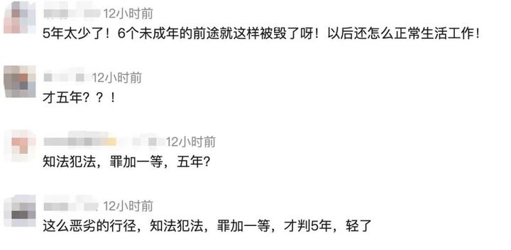 “5年太少了!6个未成年的前途就这样被毁了呀!以后还怎么正常生活工作!”