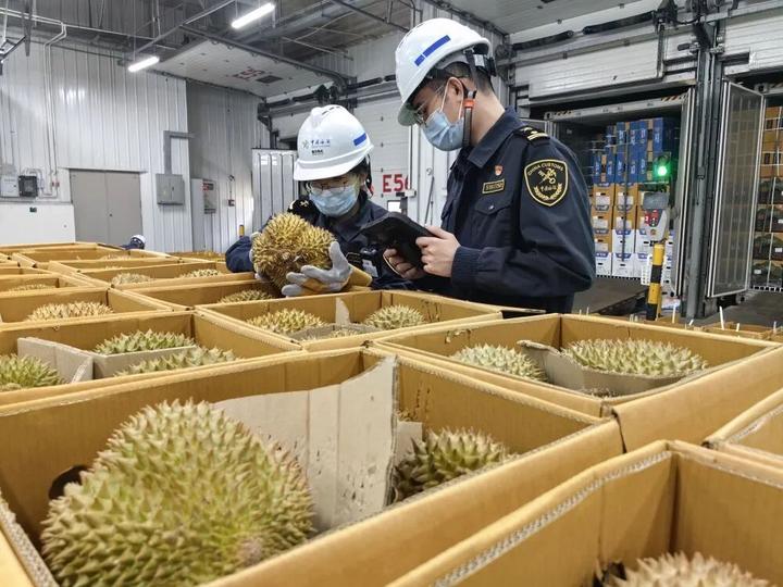 25日至26日,共计356柜超6300吨产自泰国的鲜食榴莲抵达广州南沙口岸,将陆续分拨进入国内市场。