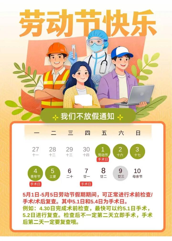 术前检查后,确定了适合自己的手术类型,最快第二天就可以手术了。术前需要放松心情,好好休息,手术日按时到院做术前准备,手术日需要有陪同人哦。