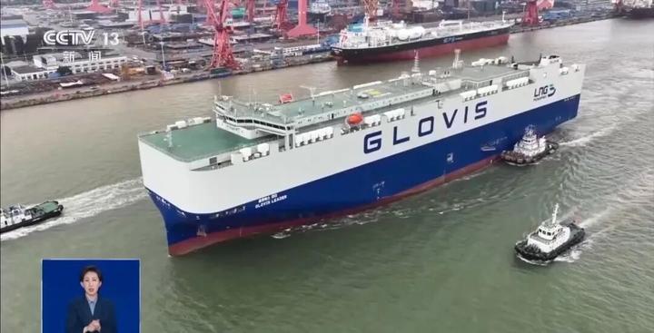 28日交付的全球首艘万车级汽车运输船长230米,型宽40米,设计了14层车库甲板,可灵活装载电动汽车、氢能源汽车及重型卡车等多元车型。同时,船舶还搭载了最新的绿色燃料系统,符合全球最新环保要求。