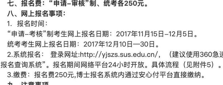 ▲《2018年上海体育学院博士招生章程》中关于报名时间的截图