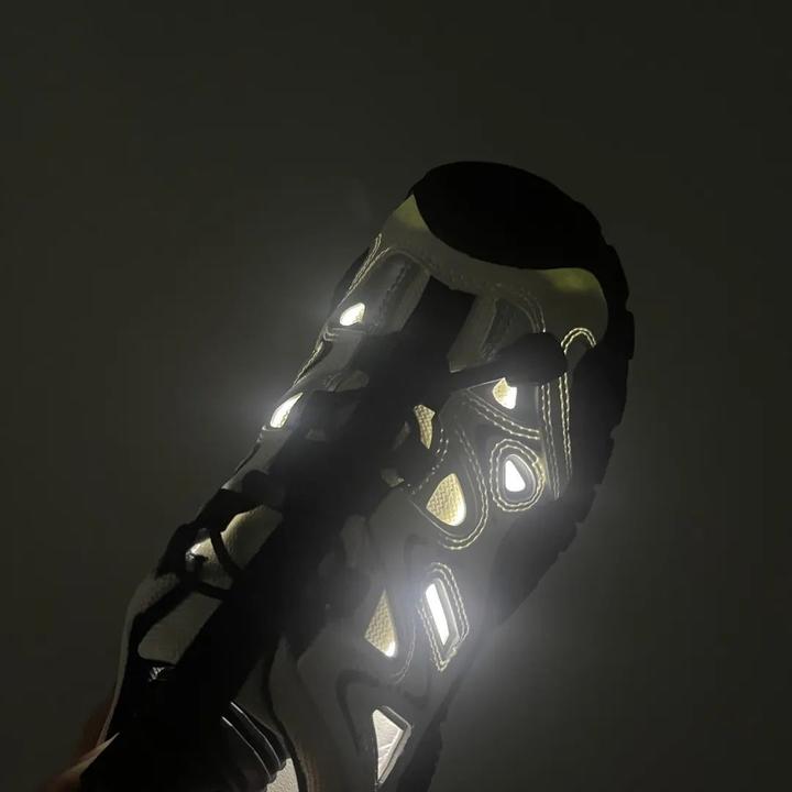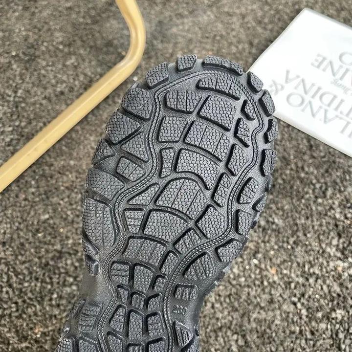 鞋底采用防滑纹路设计,鞋底花纹经过合理排布,在常见的湿滑路面,如瓷砖、石板或轻度泥泞地形之上,都能提供不错的抓地力。