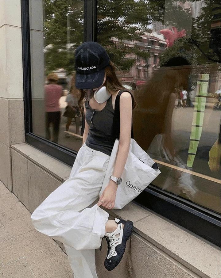 黑色,搭配工装裤或鲨鱼裤,酷感十足。