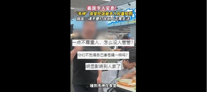 韦东奕没有搭理,克制着继续吃饭。针对各类围观,韦东奕此前明确表态,不想再做回应。但是,这些人对他的骚扰,让广大网友都看不下去了。不少网友留言,批评拍摄“太过分了”“令人窒息”。