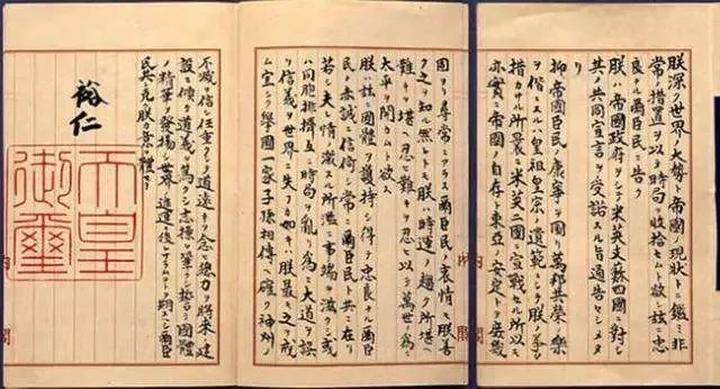 1945年8月15日12时整,电台开始以所谓“玉音放送”的形式播出了裕仁天皇亲自宣读的《终战诏书》。