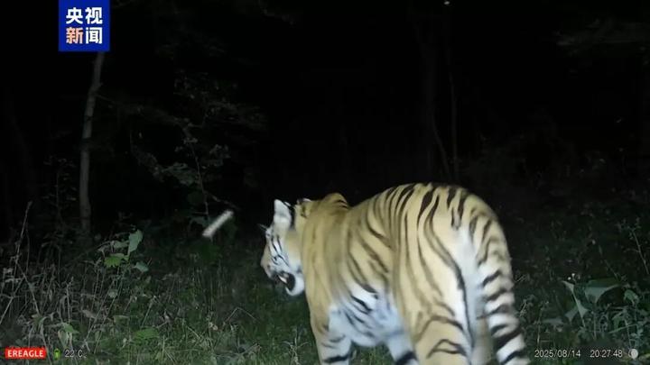 【野生东北虎“完达山一号”再现身】我国首次成功救护并放归野生的东北虎“完达山一号”有了新消息,本月现身东北虎豹国家公园东宁片区,目前健康状况良好。(央视网)
