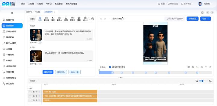 ▶ 数字人物注入:为视频添加表情自然、语音流畅的AI数字人