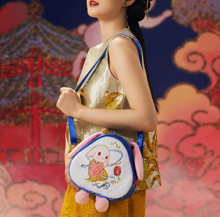 令人惊喜的是,这四个礼盒皆可“华丽变身”——随盒附赠可拆卸肩带,轻松一扣,即成古风毛绒包。