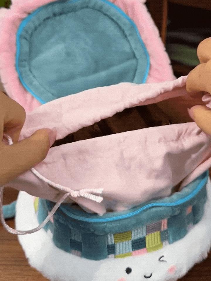 而且,它还有“两幅面孔”:看着是毛绒玩具,实际是可爱的礼盒!