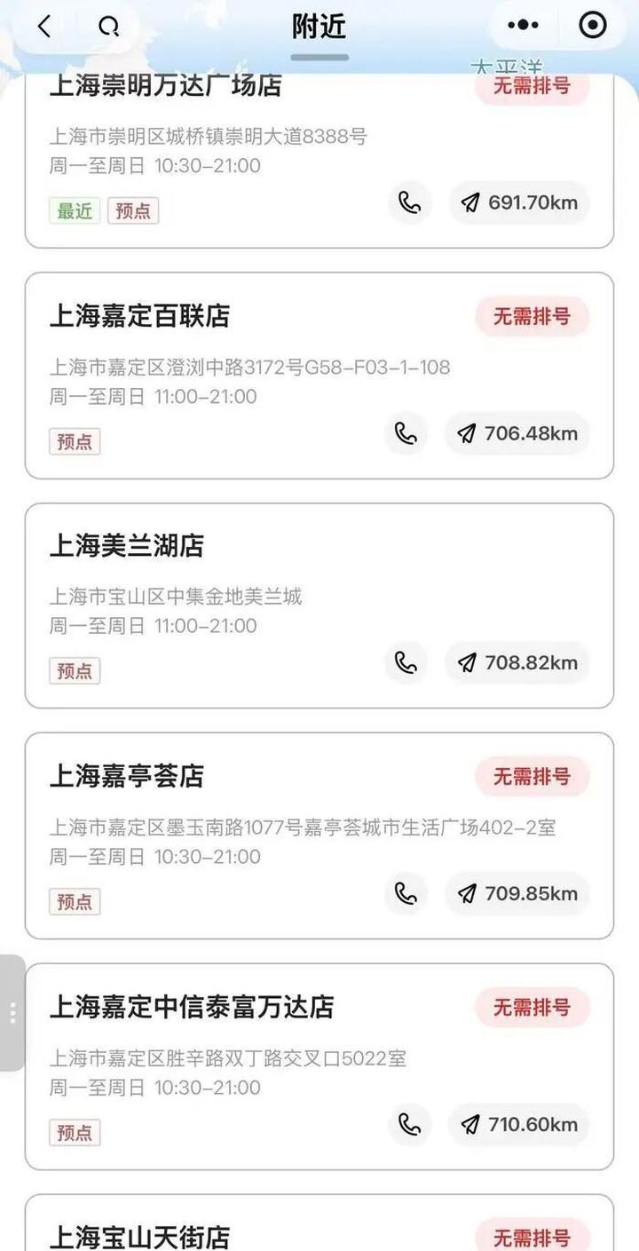 如果将地址切换到北京,排序靠前的20家门店中,有6家显示“无需排号”。在上海,排序前20名的门店中,17家门店提示“无需排号”。西贝活动热度可能存在明显的地区和门店差异,并未在全国范围内形成普遍的消费挤兑。