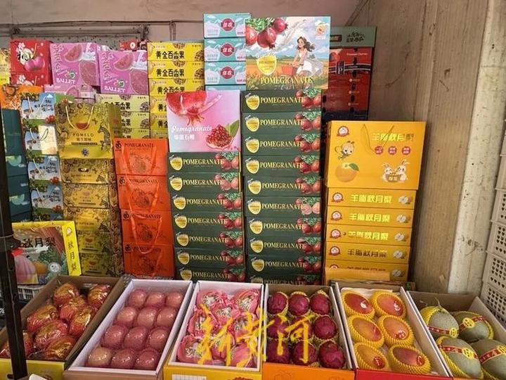在八里桥果品批发市场内,新黄河记者观察到,各个商家门口前囤满了水果礼盒,门前摆放着软籽石榴、红肉柚子、秋月梨等时令水果展示品。“卖得最好的肯定是石榴礼盒,平均每天能卖四五百个,最高的时候能卖一千盒,有的企业批发以后用来发放礼品。”