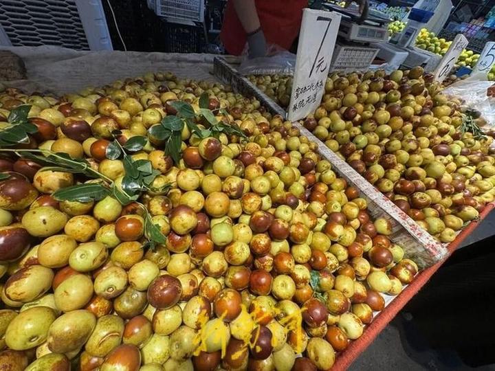 在八里桥便民市场上售卖的散装石榴、冬枣、肥城桃等备受市民青睐。石榴价格在3.5元/斤-6元/斤,冬枣的价格为每斤5-7元,肥城桃价格在每斤6-8元。记者了解到,散装的水果称好后也可以选择礼盒包装,有商家需额外收取3元礼盒费,类似冬枣、肥城桃等礼盒可以挑选后随水果一起称重,不少商家称不再额外收取礼盒费用。