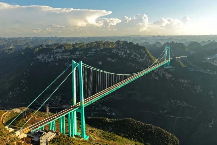 9月28日,横跨贵州省贞丰县与关岭县的世界第一高桥——六安高速花江峡谷大桥正式建成通车。这座“横竖”都是世界第一的超级大桥:主桥跨径1420米,居山区桥梁世界第一;桥面至水面高差625米,同样登顶世界第一,将成为连通贵州六枝至安龙高速公路的关键枢纽。
