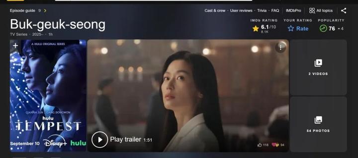 《暴风圈》表面上是在韩国制作发行,韩国演艺人担纲,以韩国为故事主要舞台的韩剧,但其实投资方、主要的制作方,都是美国迪士尼。其线上播放取得了日、韩双榜首的优秀成绩,也离不开Disney+和hulu平台的大力推广。迪士尼在涉华议题上的取态一直偏右,甚至还在不断右倾,其成色大家也是心里有数。