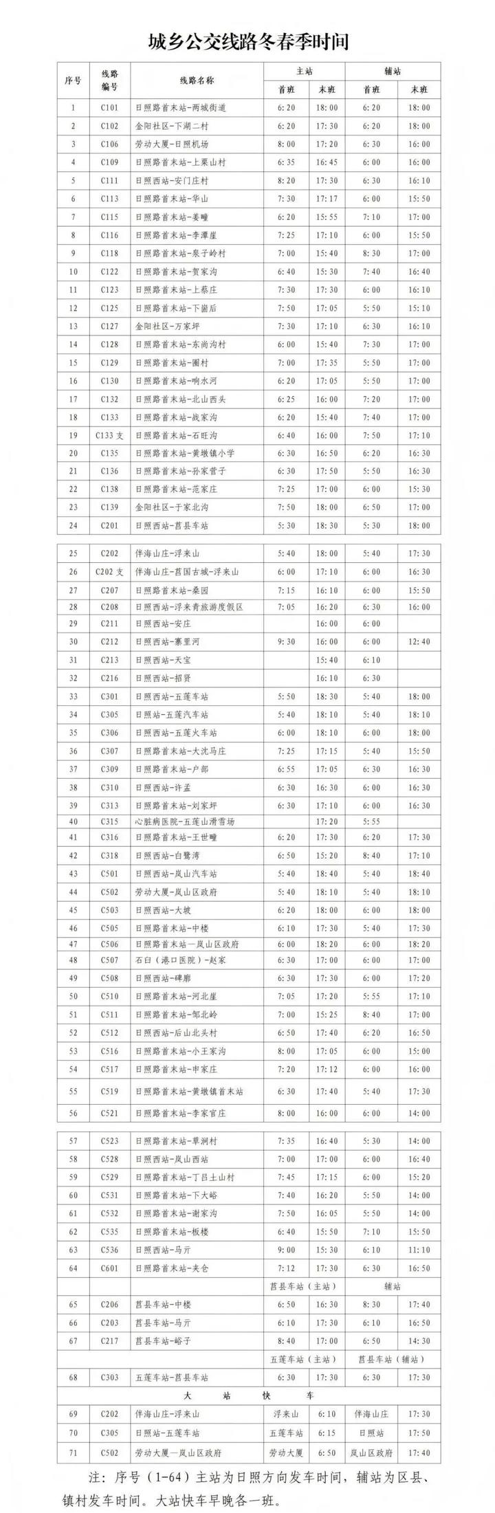 附:城乡公交线路冬春季时间
