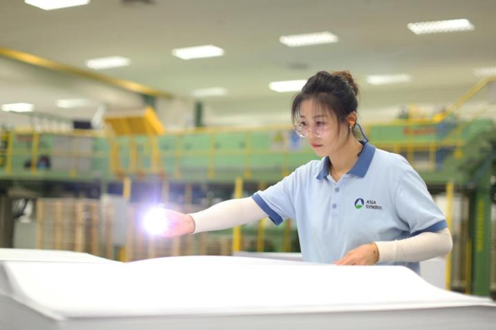 10月2日,在亚太森博(山东)浆纸有限公司年产50万吨文化用纸生产车间全自动化流水线上,纸机正以1600多米/分钟的出纸速度高速运转。 假期,亚太森博(山东)浆纸有限公司统筹供产销资源,严格落实各项安全生产制度,做好节日期间系列安排,全力保证假日期间安全高效生产。