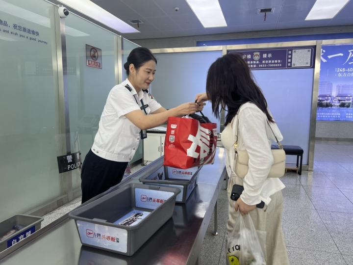为保障旅客顺畅出行,日照机场安检护卫部针对节日期间旅客携带月饼、生鲜等特色物品较多的情况,提前做好政策讲解,助力旅客快速过检。