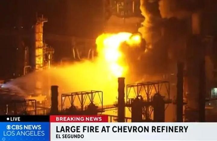 原标题:《突发!美国加州一炼油厂爆炸起火 火光冲天》