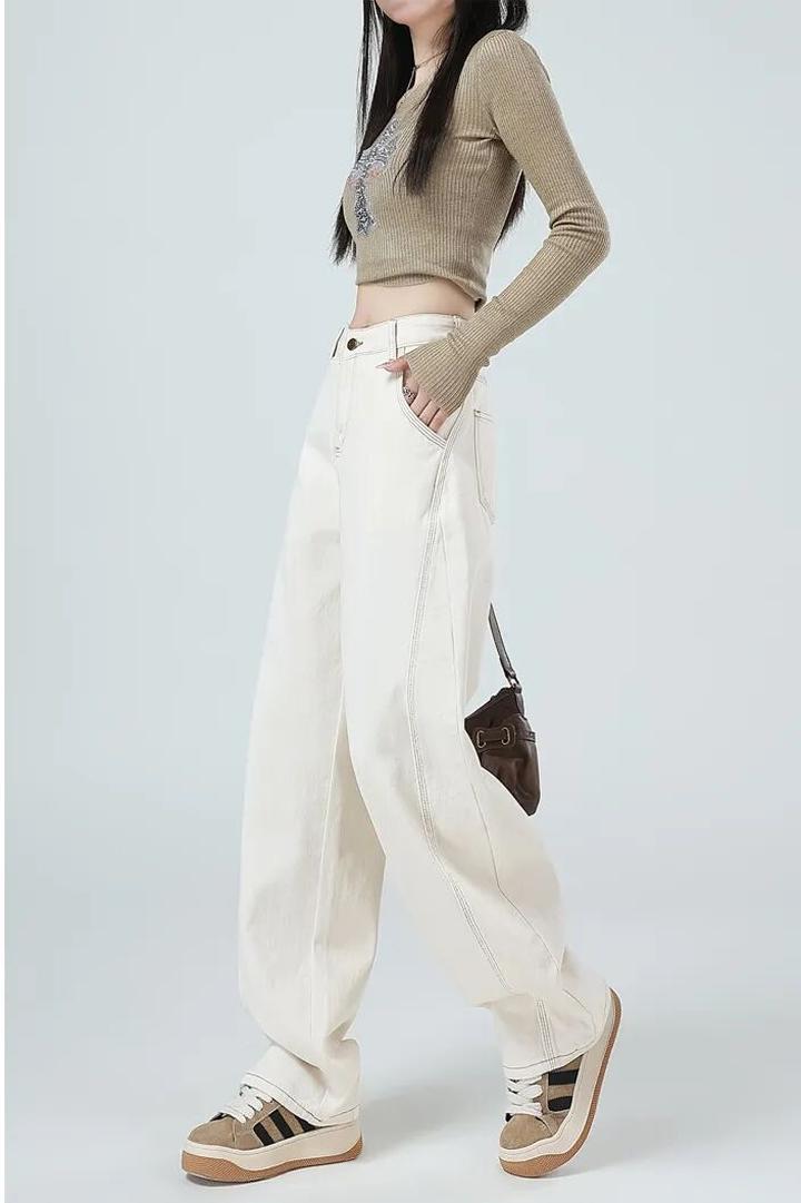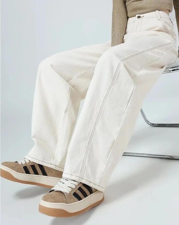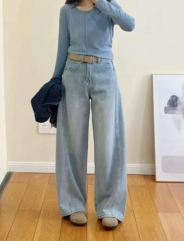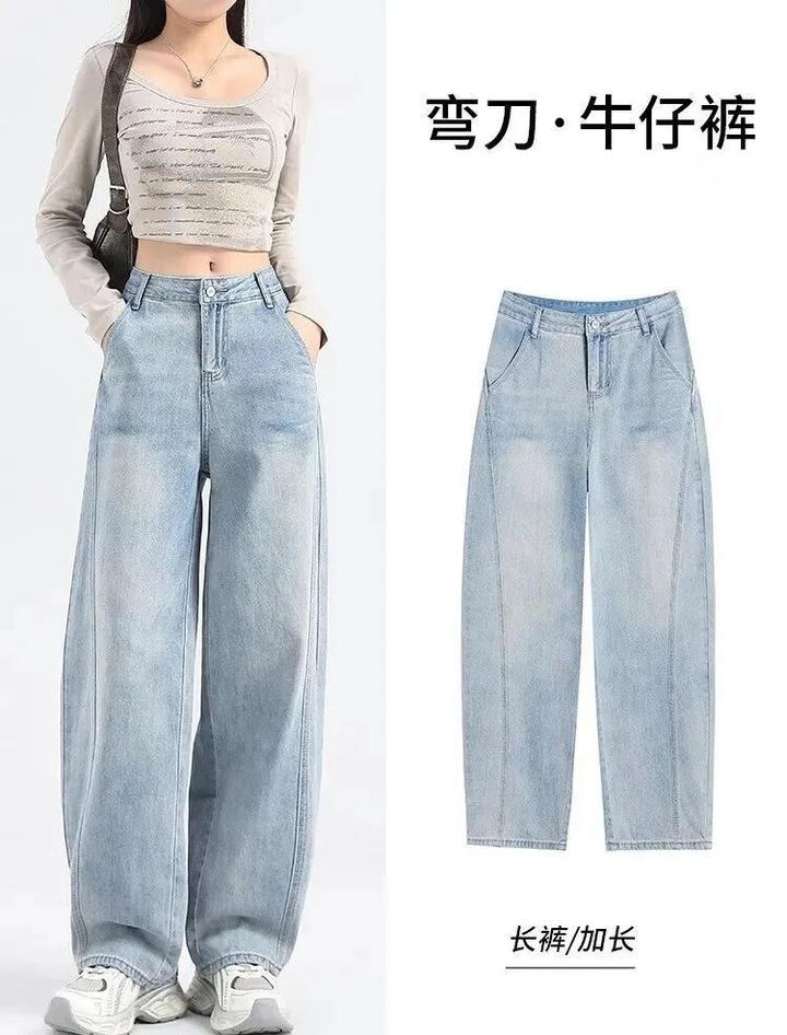 弯刀裤“出圈”的原因,就在于它能巧妙平衡身材比例,在视觉上“拉长”腿部线条。