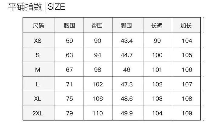 尺码从XS到2XL都有,并贴心设计了两种裤长,满足不同体型和身高人群的需求。