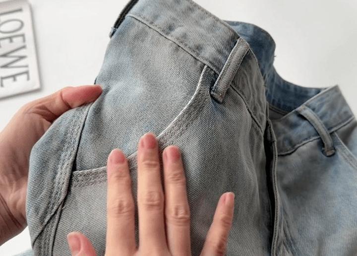 它的口袋、后臀缝线,全部采用双车走线,精致又紧密,久穿不易开线。