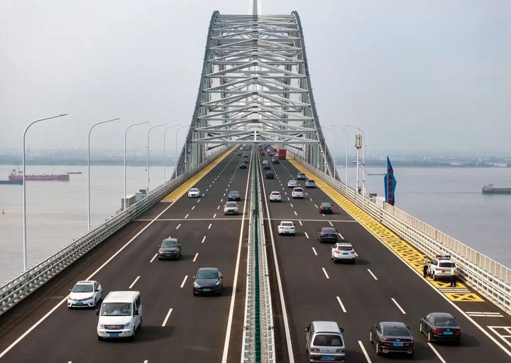 10月7日,江苏省泰州市公安局交警支队组织警力在常泰长江大桥开展常态化巡逻,守护群众平安返程。汤德宏 摄