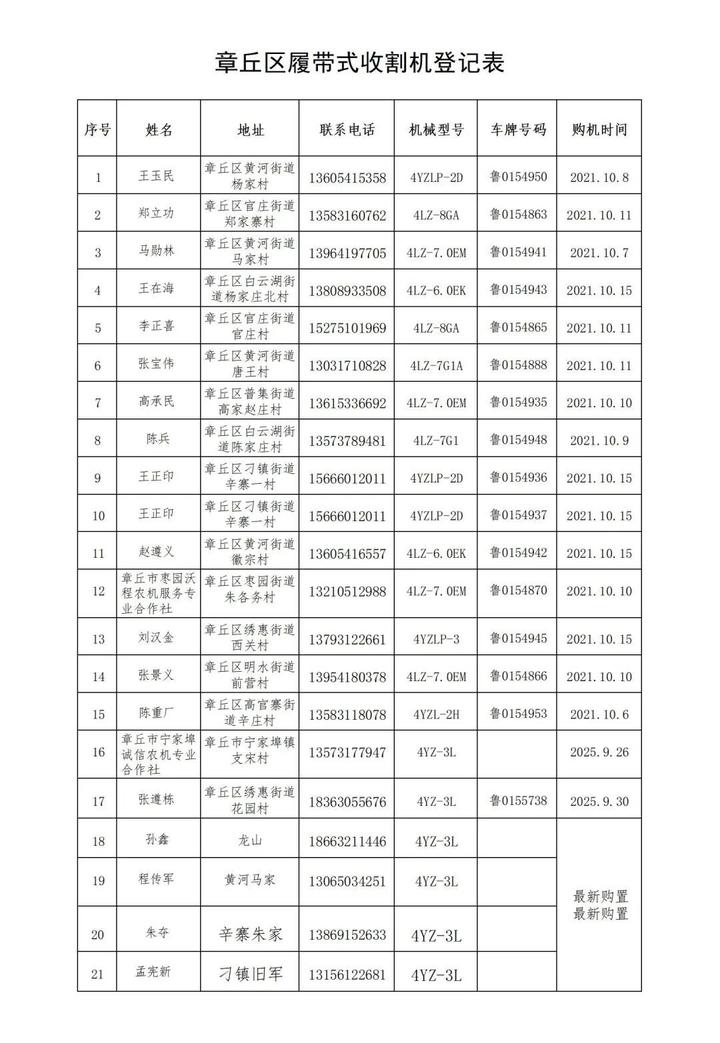 为保障“三秋”生产顺利进行,现向社会公布我区履带式收获机械提供方及应急作业服务队有关信息,如有需要可根据自身生产实际情况进行选择。