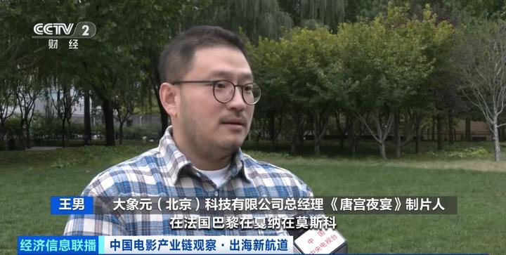 大象元(北京)科技有限公司总经理 《唐宫夜宴》制片人 王男:目前《唐宫夜宴》在法国戛纳、巴黎,在日本以及东南亚都有落地。在国外的展映过程中,其实是得到了非常多的积极反馈。我们也希望能通过我们的一种技术手段和新兴的表达方式去做一个文化交流。