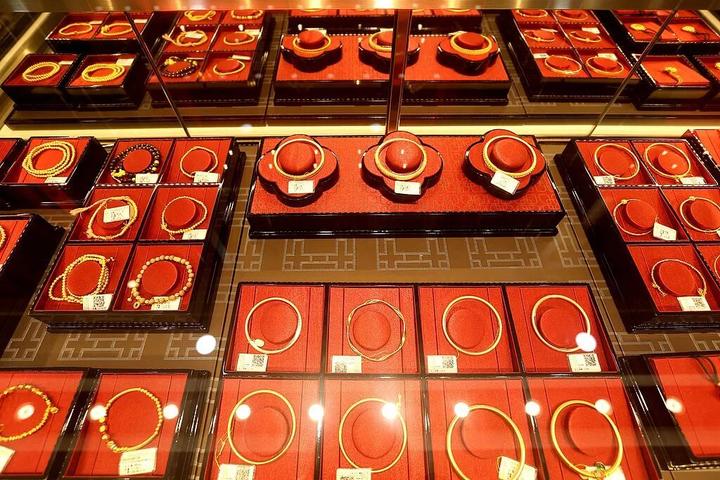不少消费者发现,购买金饰时,部分商家直接给出了“一口价”。这种“一口价”黄金饰品,就是不按照克重单价计算售卖,甚至连明确克重都不标注,由金店直接定价销售。