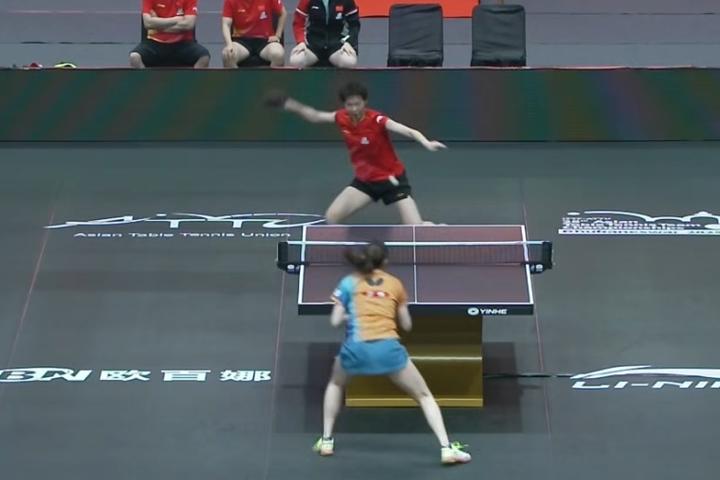 第一盘,王曼昱10-12、11-3、11-6、11-3战胜桥本帆乃香,为中国队先得一分。