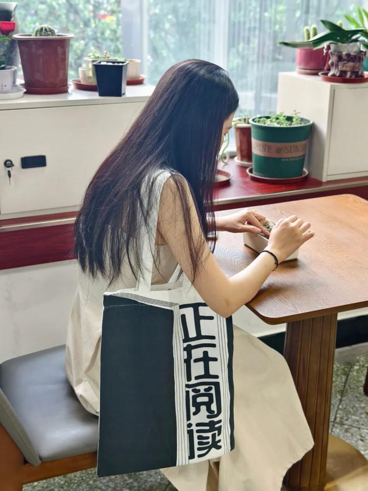 每年我们都会推出一款正在阅读主题帆布袋,希望鼓励大家坚持阅读,持续阅读。