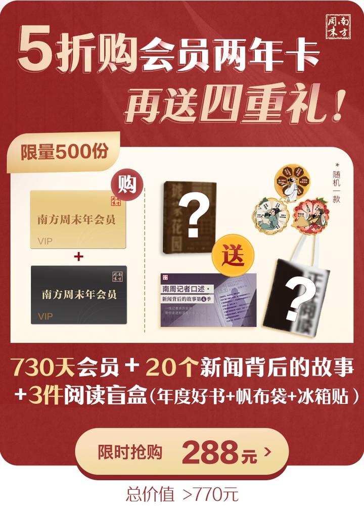 老读者都知道,南方周末年会员原价为288元,但是现在288元即可一次性带走两年会员,再送你超值4重礼!!