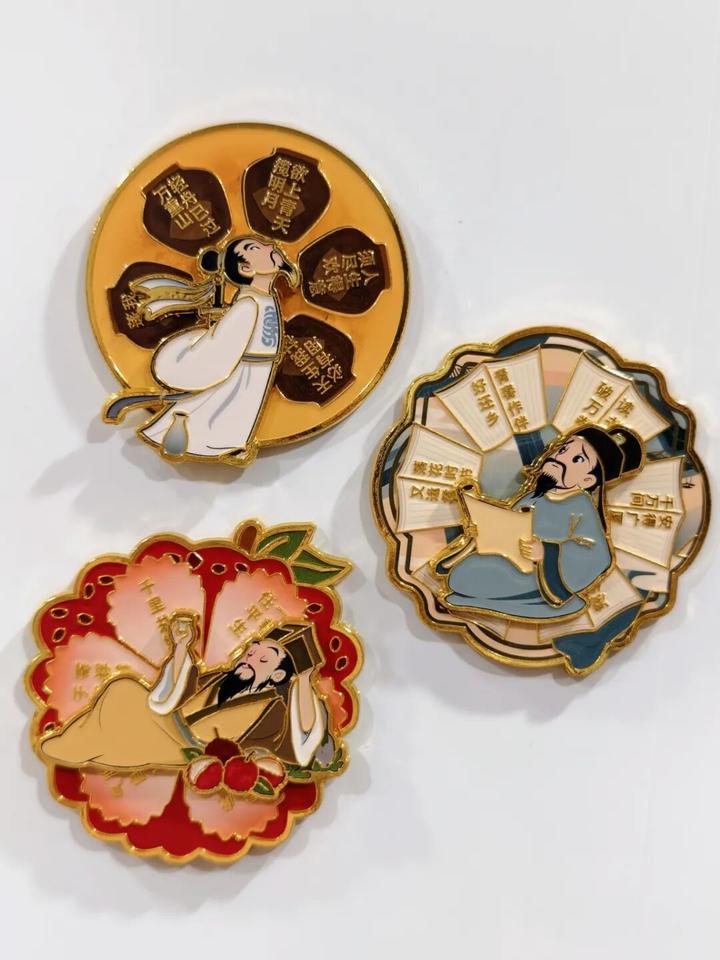 我们为这三位诗人,设计了三款旋转冰箱贴。一个冰箱贴直径8cm左右,拿在手上,都是厚重的分量。