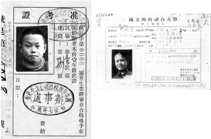 △杨振宁西南联合大学准考证(左)、学籍卡(右)。