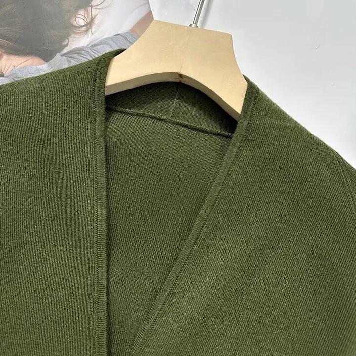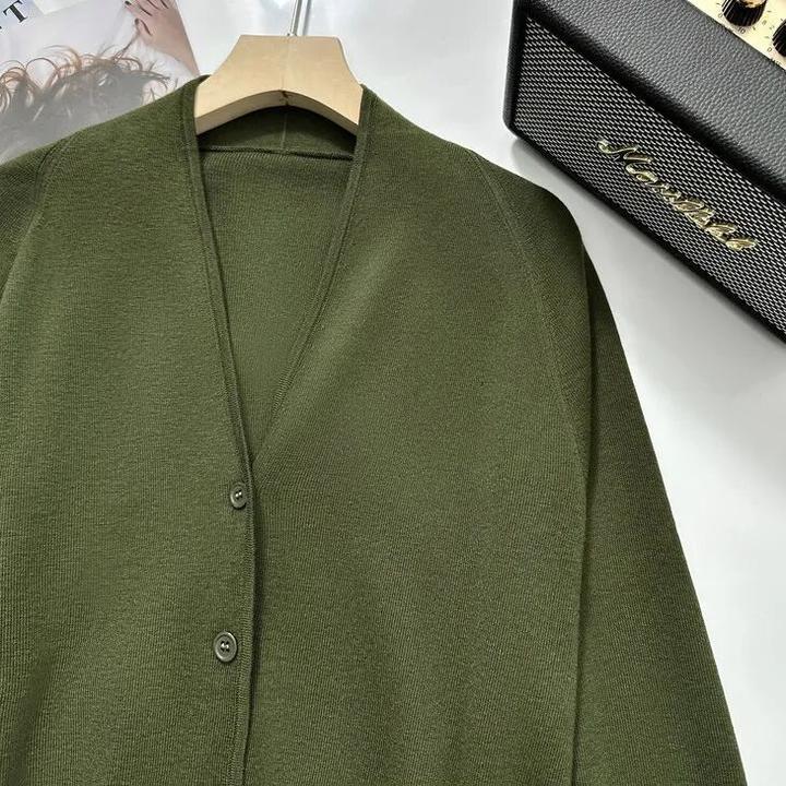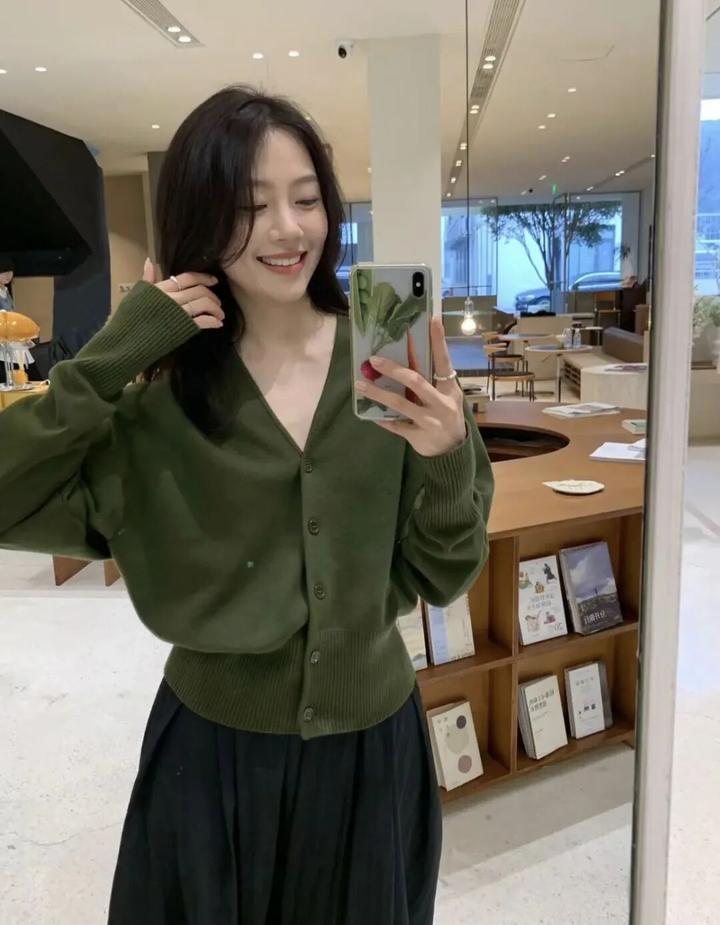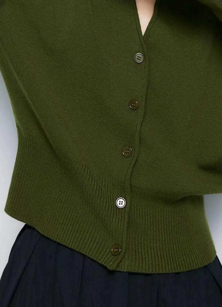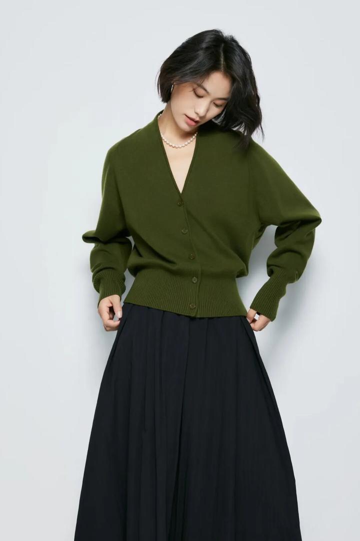 于是找了高端休闲品牌isabelle marran,【暗冷杉绿V领开衫】。