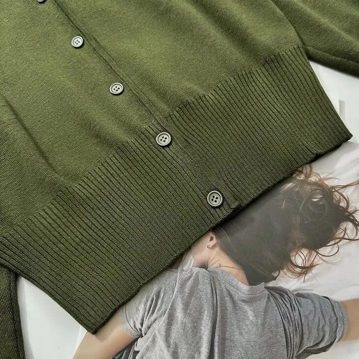 解开开衫纽扣作外套穿,短款版型搭配高腰牛仔裤显比例,袖口收口设计突出利落感。