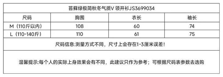 M码,适合胸围108衣长60袖长74,110斤以内的姐妹穿。