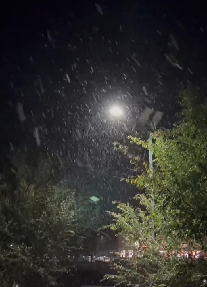 今天午后,北京延庆区玉渡山高山草甸出现降雪。