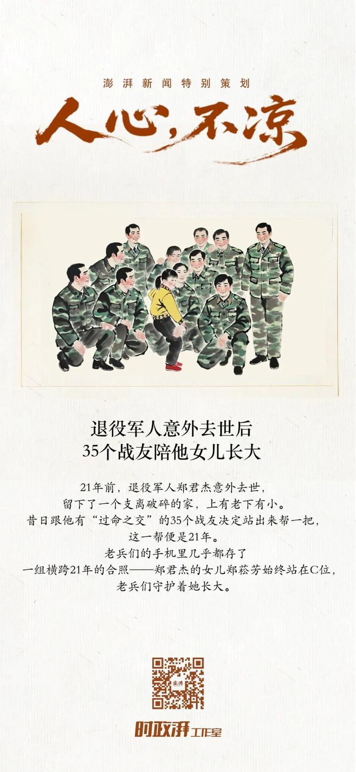 《人心,不凉》专题今天要讲的是退役军人郑君杰意外去世后,35位战友陪他女儿长大的故事。这则感人的故事多年来持续受到媒体关注。澎湃新闻最新回访,记录下这场跨越时空的善意接力的最新续章。