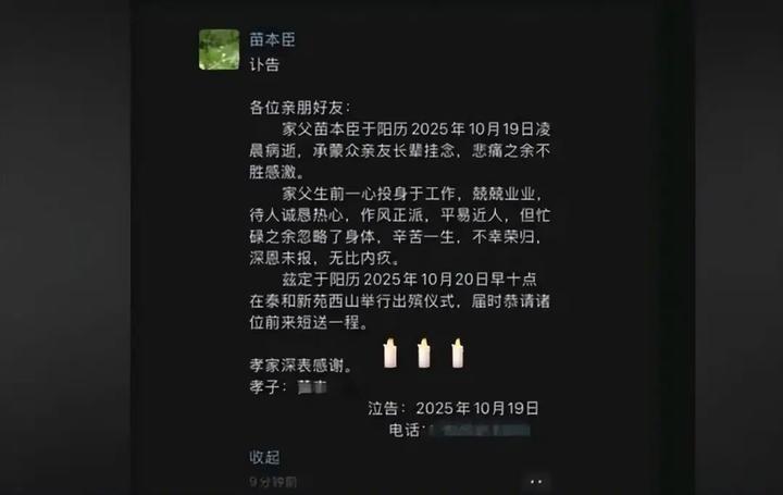 朋友圈讣告截图