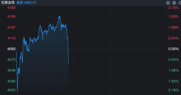 现货黄金在昨日(21日)大跌之后,今天盘中再次直线跳水。截至发稿,伦敦金现报4062.47美元/盎司,日内再次由涨转跌。