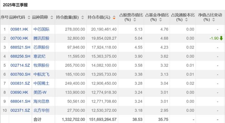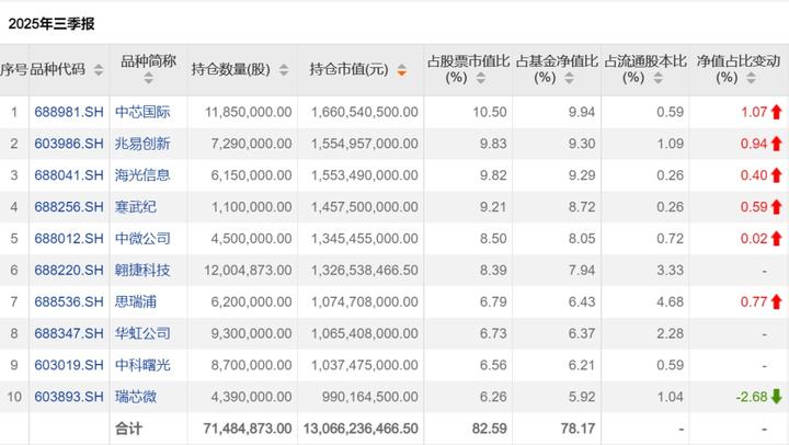 多只绩优基金三季度保持高仓位运作。具体来看,截至三季度末,郑巍山管理的银河创新成长混合基金的权益投资占基金资产净值比例为94.65%。三季度,银河创新成长混合基金对半导体产业链细分结构进行了适当调整。从该基金前十大重仓股来看,翱捷科技、华虹公司、中科曙光成为基金新进前十大重仓股。